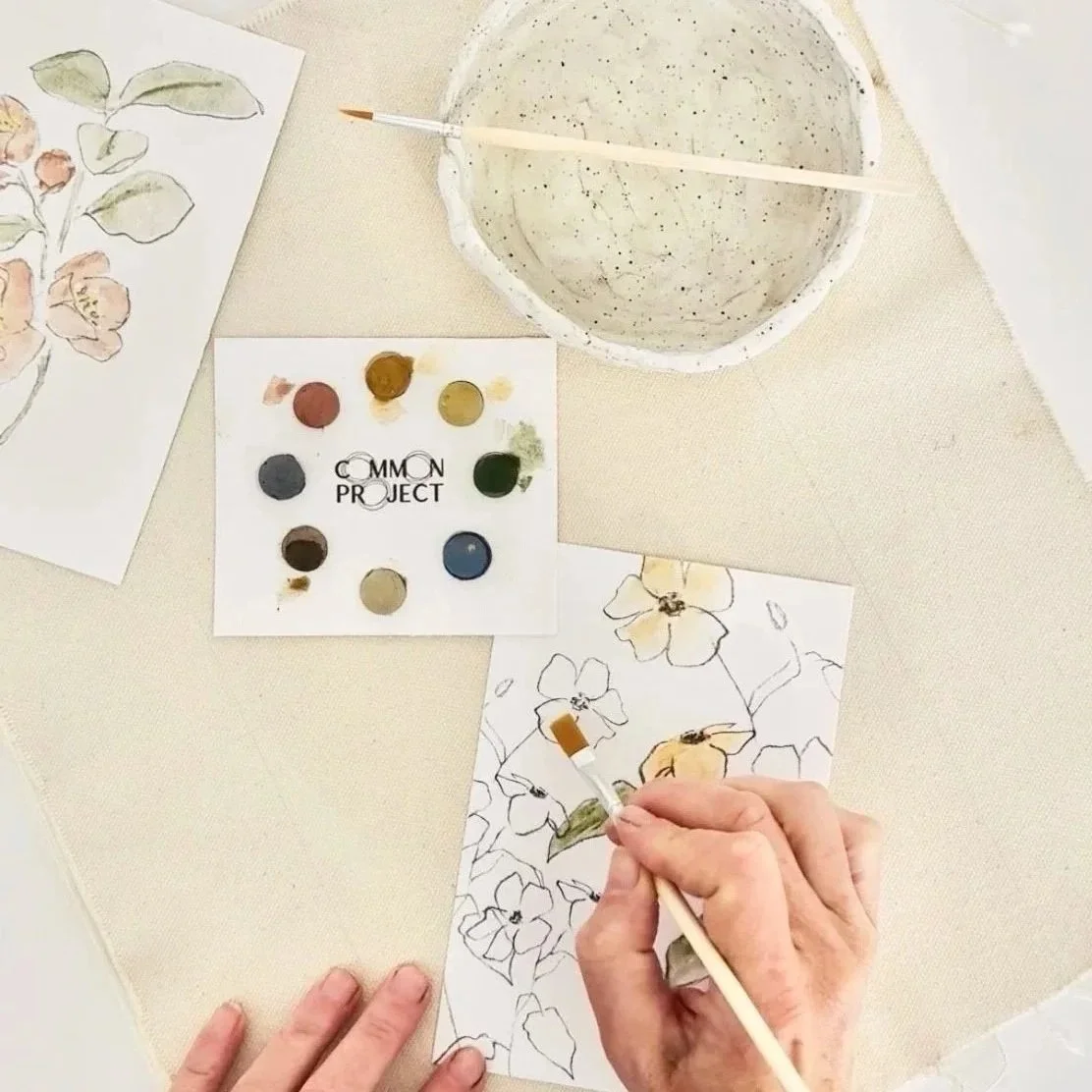 Relax into a calming, carefree creative collaboration inspired by our coastal community. Choose eight in-studio made clay-based watercolor pods. Then, paint a trio of Coastal illustrations or select a beautiful collection California Wildflower designs. All illustrations are printed on quality watercolor paper. Celebrate and connect with our seaside culture and take home authentic artwork worthy to display on your walls. This project is truly where creativity + community come together.